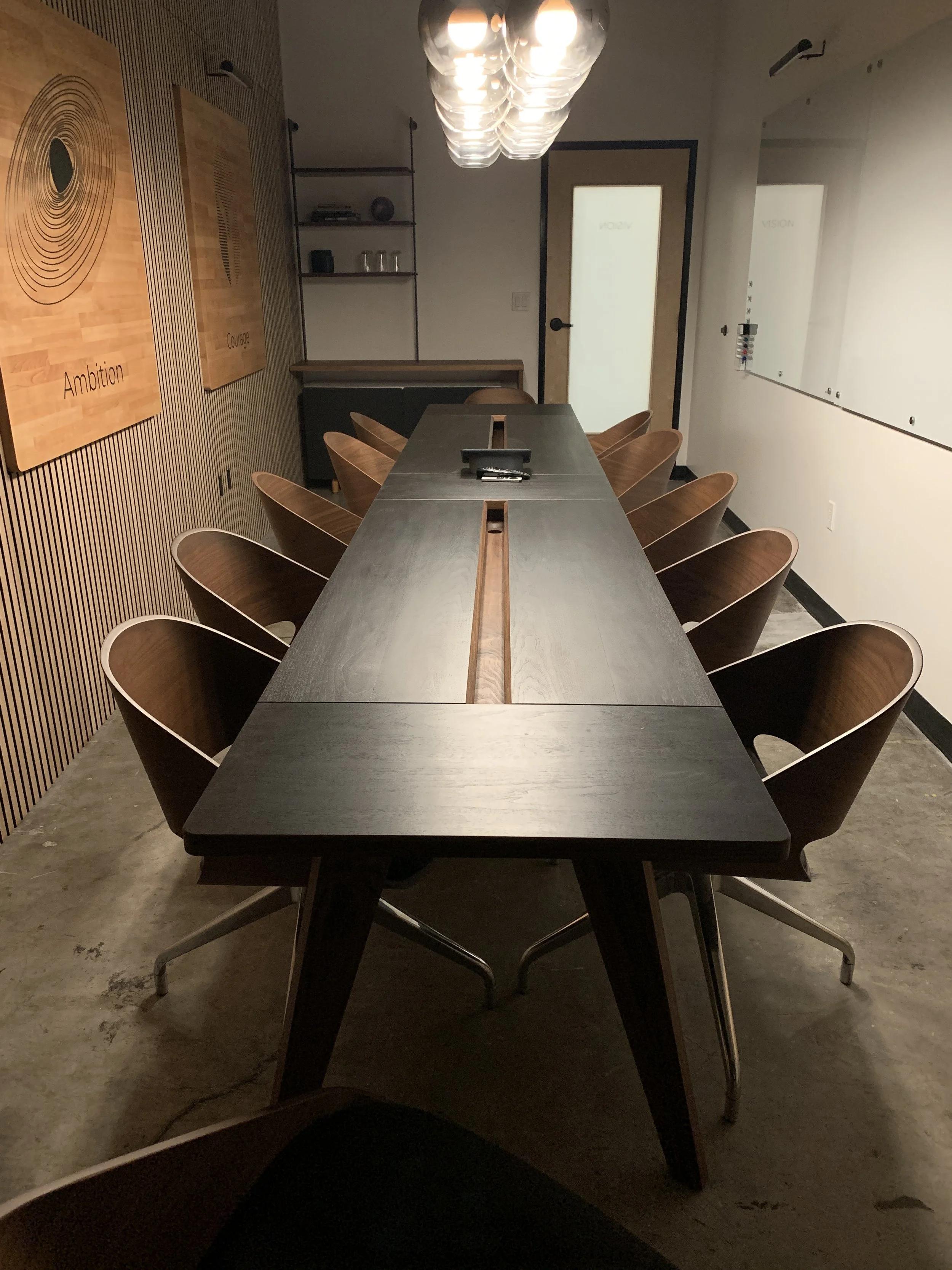 Solid walnut conference table and bar cabinet for Austin based tech start up.